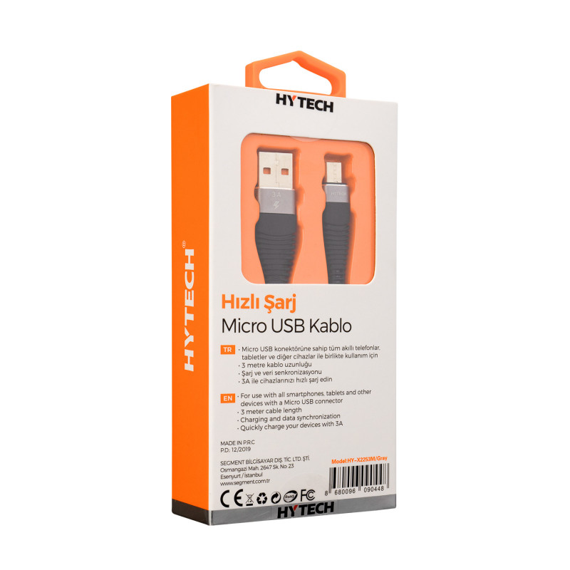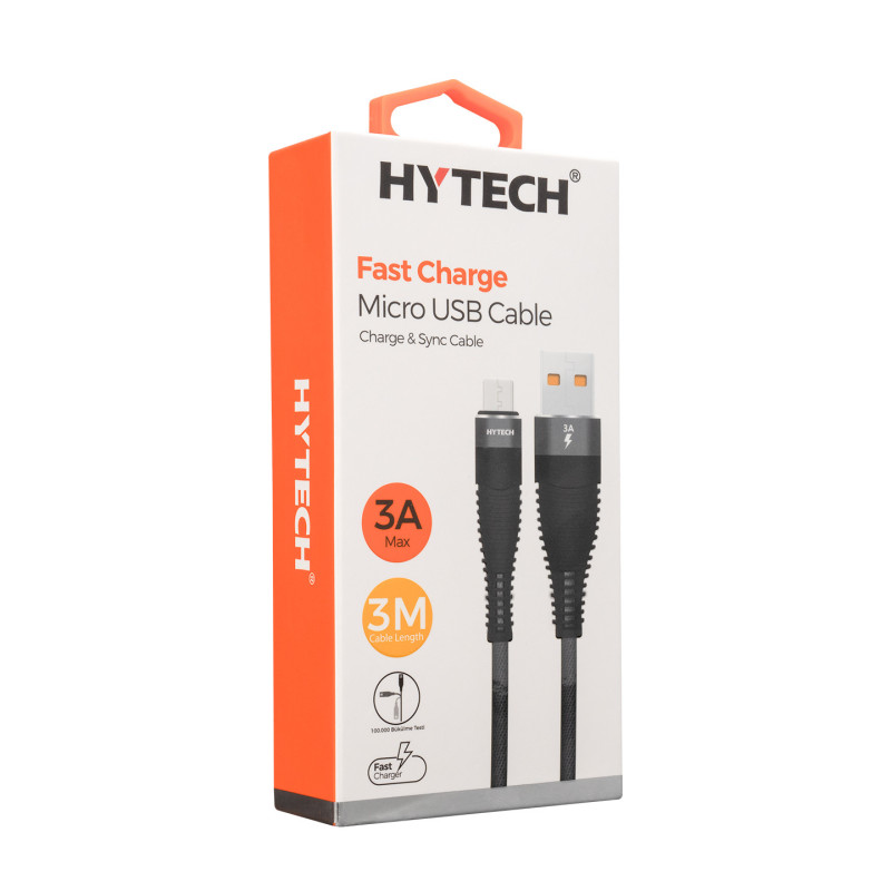 Hytech HY-X2253M USB na microUSB obloženi kabel 3A 3m Sivi
